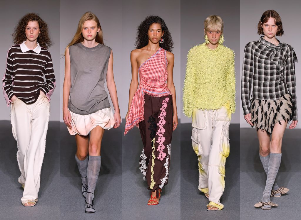 Katharina Grosse流暢多彩的筆觸、Christopher Wool的抽象線條體現在繫結洋裝、蓬蓬裙等單品;Gio Ponti最受關注的椅子與建築物作品素描被印在襯衫及裙子。還有蔓延在超大工裝褲的鉤針玫瑰、繡在西裝與洋裝的珠狀像素,廣泛運用冷染效果及流蘇剪裁,塑造一種更具時尚冒險精神的系列。
