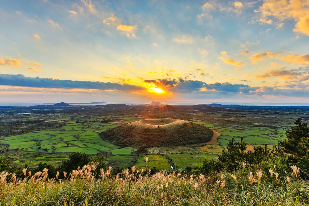 濟州島秋景最知名的是唯美芒草,想看紫芒草花海,必訪濟州東南面周長超過2公里的火山”山君不離”,植物種類繁多,秋季粉紫色芒草花海別具氛圍。濟州的秋令補身料理首推以鮑魚為主的鮑魚內臟飯、海鮮鍋,及將鮑魚磨碎跟米飯一起熬煮成的鮑魚粥,兼具海鮮甜味與增強免疫系統的功效。