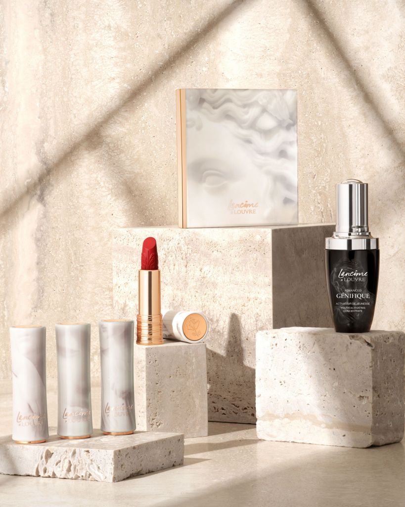 「羅浮宮聯名系列限定眼頰彩盤」黎塞留庭院色彩調色盤結合高光及4個獨特眼影色調,靈感來自羅浮宮黎塞留庭院。「絕對完美唇膏–絲絨霧感(羅浮宮聯名限定版)」唇彩系列有4個獨特色調,每支色調背後都有一位女性神祉的故事。經典維穩神作「超未來肌因賦活露(羅浮宮聯名限定版)」,則由健康女神希吉亞呈現。