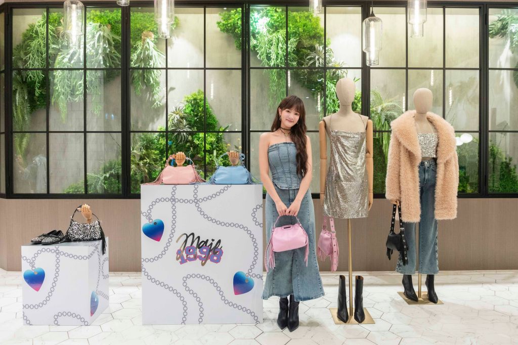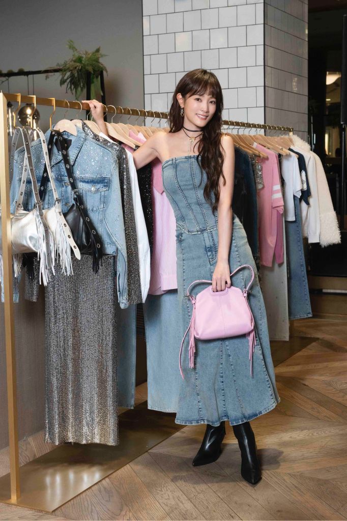 王淨一身率性牛仔裝出席,以牛仔馬甲上衣、牛仔長裙搭配皮革短靴及Mini Miss M包,配件穿戴花朵項鍊及圈形耳環,以25歲MAJE女孩的自信時尚風格一同慶祝特別25周年,精心詮釋向1998年致敬的特別系列。