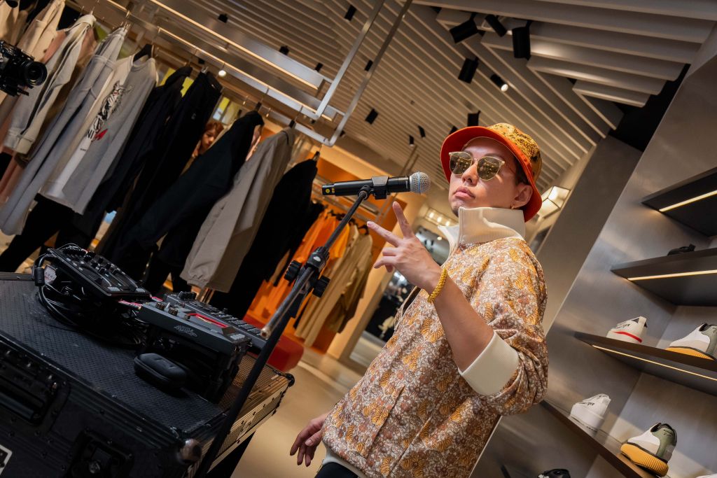 金鐘視后柯佳嬿穿著OTIGER系列設計時尚高雅,以橘色大領片百褶設計洋裝搭配黑灰色針織毛衣,大膽撞色穿搭充滿既搶眼又內斂的特質,加上OTIGER COURT休閒鞋亮眼時髦,詮釋品牌的多樣性與獨特性。金曲獎最佳男歌手蛋堡的音樂饗宴,充滿藝術與時尚的氛圍將開幕活動推向高潮。