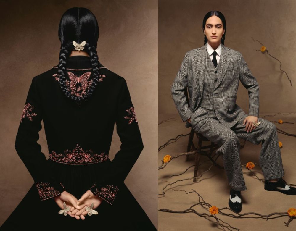 Frida19歲便穿上男士三件式西裝,昇華女性氣質,追求超越所有知識的獨立性。本系列西裝致敬她的風格,透過將傘裙搭配傳統束腰外衣演繹Tehuana風俗,被稱爲huipil墨西哥傳統服飾。