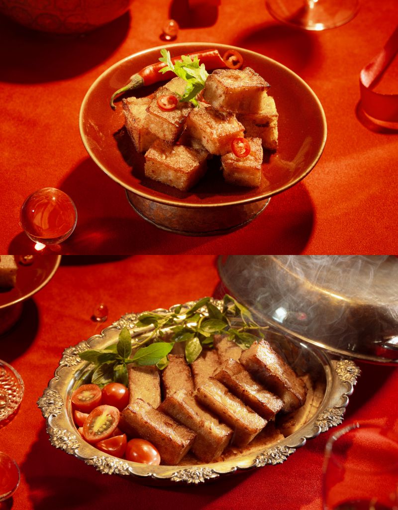 賈以食日川味麻辣蘿蔔糕擁有川辣鴨血冬粉湯底中花椒的麻感與香勁,每口都能嚐到不同層次堆疊的辣感。泰味酸辣魚蘿蔔糕使用泰式冬蔭酸辣醬,根據正宗泰式食譜,以月桂葉、檸檬草、香茅、薑黃、辣椒等多種辛香料調味,酸辣帶勁又開胃,道地風味一吃上癮。兩大辣感入味蘿蔔糕,驚艷口感令人垂涎。