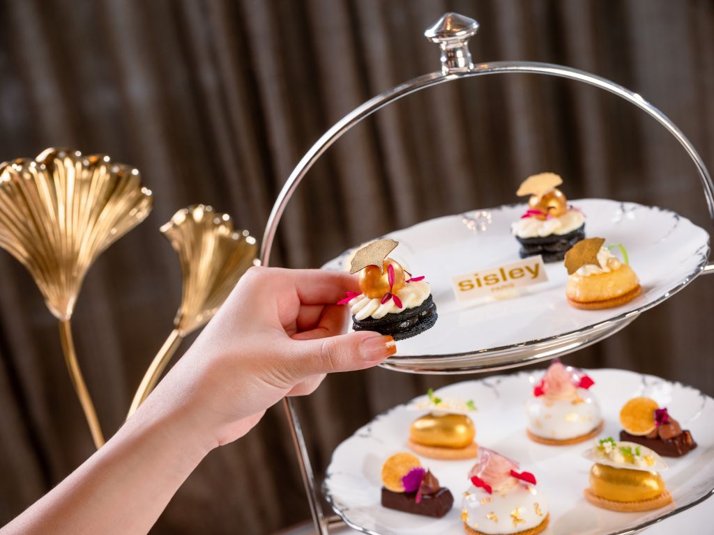 台北文華東方酒店行政西點主廚趙崇曦(Kevin Chiu)與文華Café主廚林禹德(Derek Lin)匠心獨具地打造頂級保養品聯名下午茶,以SISLEY奇蹟逆時系列元素為靈感,精彩演繹一系列充滿金緻光采的繽紛誘人美點。多款外型小巧精美的甜鹹點,滋味豐富蘊含細膩層次,由內而外皆繽紛可口、令人無法抗拒。