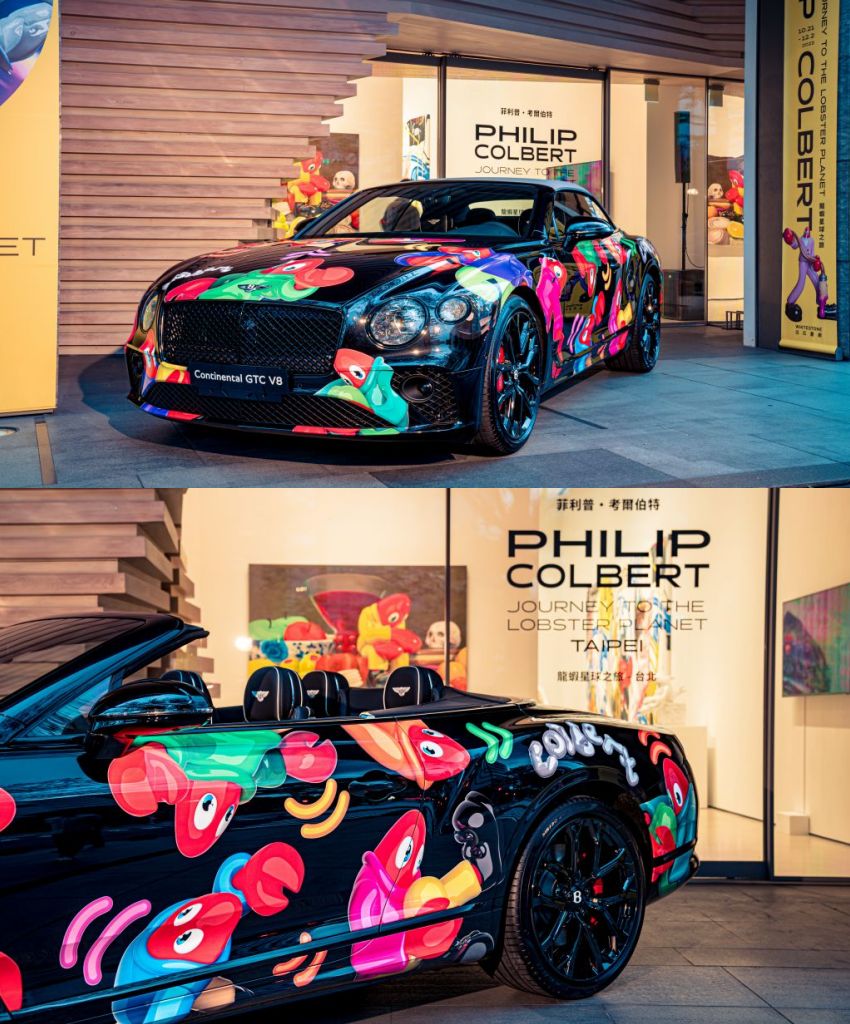 BENTLEY TAIPEI與白石藝廊再次跨界合作,邀請菲利普考爾伯特Philip Colbert”龍蝦星球之旅”全新作品登陸展間,透過普普藝術與造車工藝精采融合,藉由三方跨界合作打破汽車工業剛硬印象,展現賓利富含藝術性及活潑趣味面向,重新界定美感與動態之間的獨特風貌,帶來一次充滿創意的革命性美好邂逅。