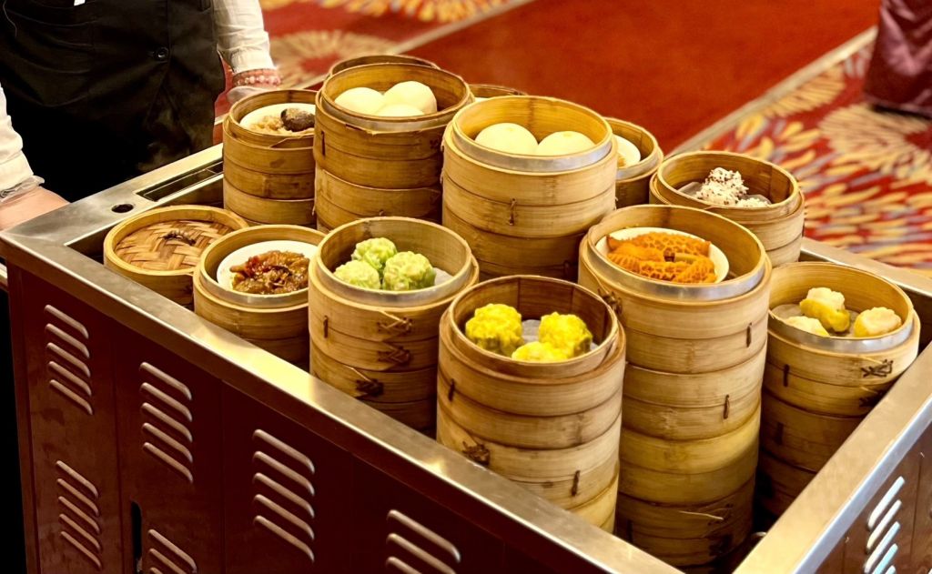 承載著香港飲茶文化的點心推車也重磅回歸翠庭服務,推車上蒸籠冒著陣陣白煙,琳瑯滿目的港點香氣撲鼻,魚子燒賣、鼓汁蒸排骨、天成奶黃包等豐富蒸點品項在桌席之間穿梭叫賣,台北天成大飯店復刻港式風情,延續傳統趣味十足。