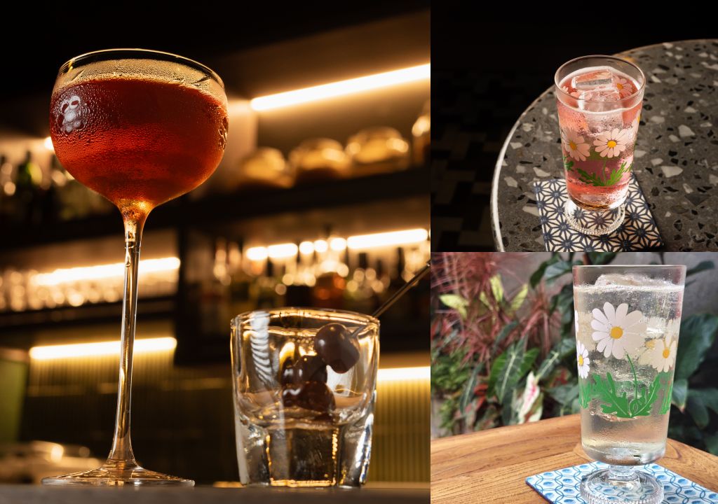 AURA靈感來自秀英花故事,日治時代三重大量種植秀英花,作為熏花茶、製香用途,是當時極為重要經濟作物。調酒師朱松原以花香記憶出發,透過不同萃取手法,將新鮮花朵與茶葉香氣濃縮聚集,調製出百變花茶調酒,打造記憶中香氣調酒。