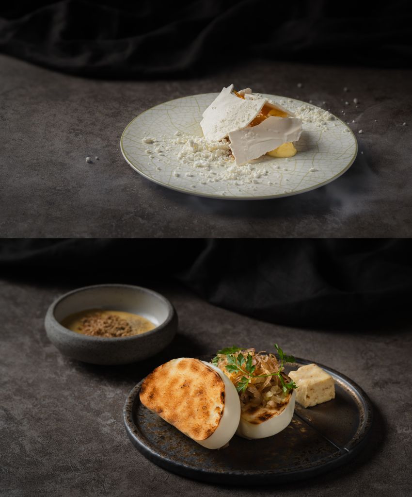 酒吧裡少不了美味下酒菜,主廚陳柏翰也為AURA設計一系列創意眷村小食,以西式作法翻玩傳統眷村菜色,運用醃漬、風乾、發酵等料理方式,創作出一道道精緻可口的佐酒料理。