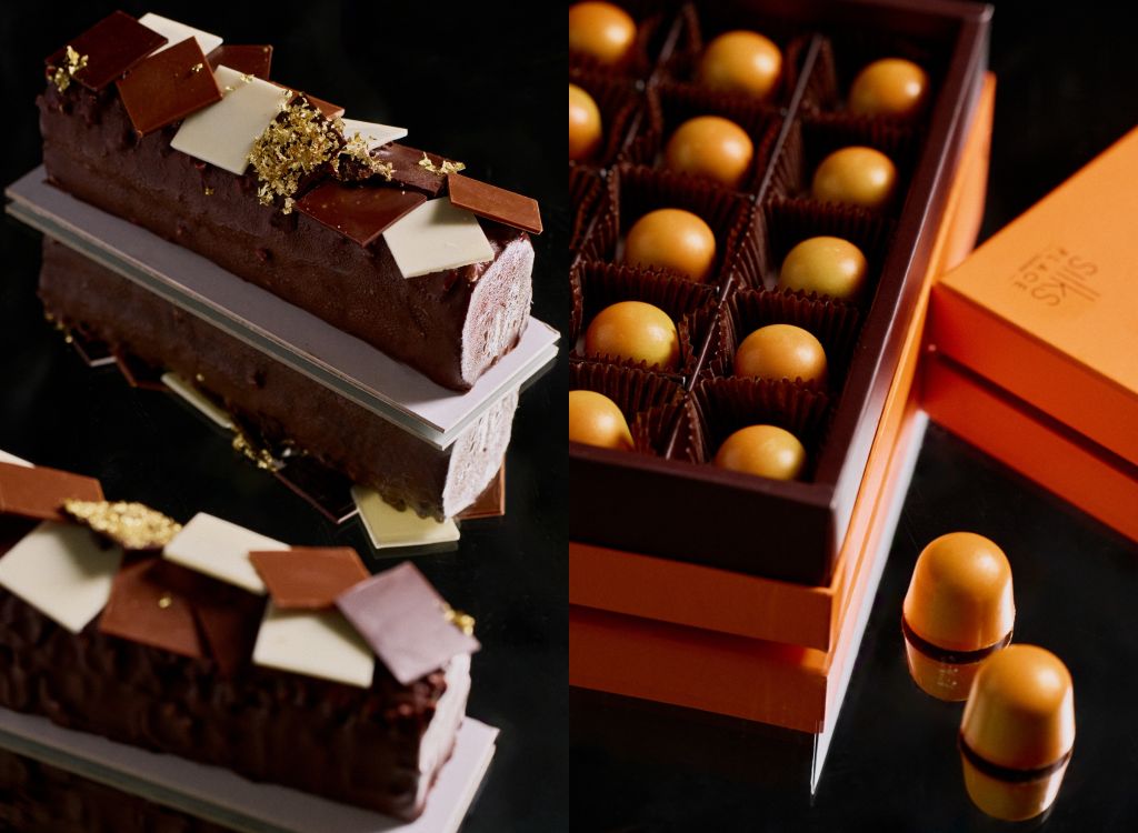 1樓外賣中心亦有販售客座主題巧克力商品,擁有旅日經驗的史蒂芬主廚將日本國粹清酒創意加入黑巧克力磅蛋糕,糕體質地扎實且散出清甜酒香,風味獨特的”酒粕生命果旅人蛋糕”。“日式柳橙巧克力”選用日本的不知火橘原汁熬成酸甜柑橘果醬,結合香滑馥郁、帶有飽滿堅果韻味的64%黑巧克力,一口咬下充滿幸福愉悅感。