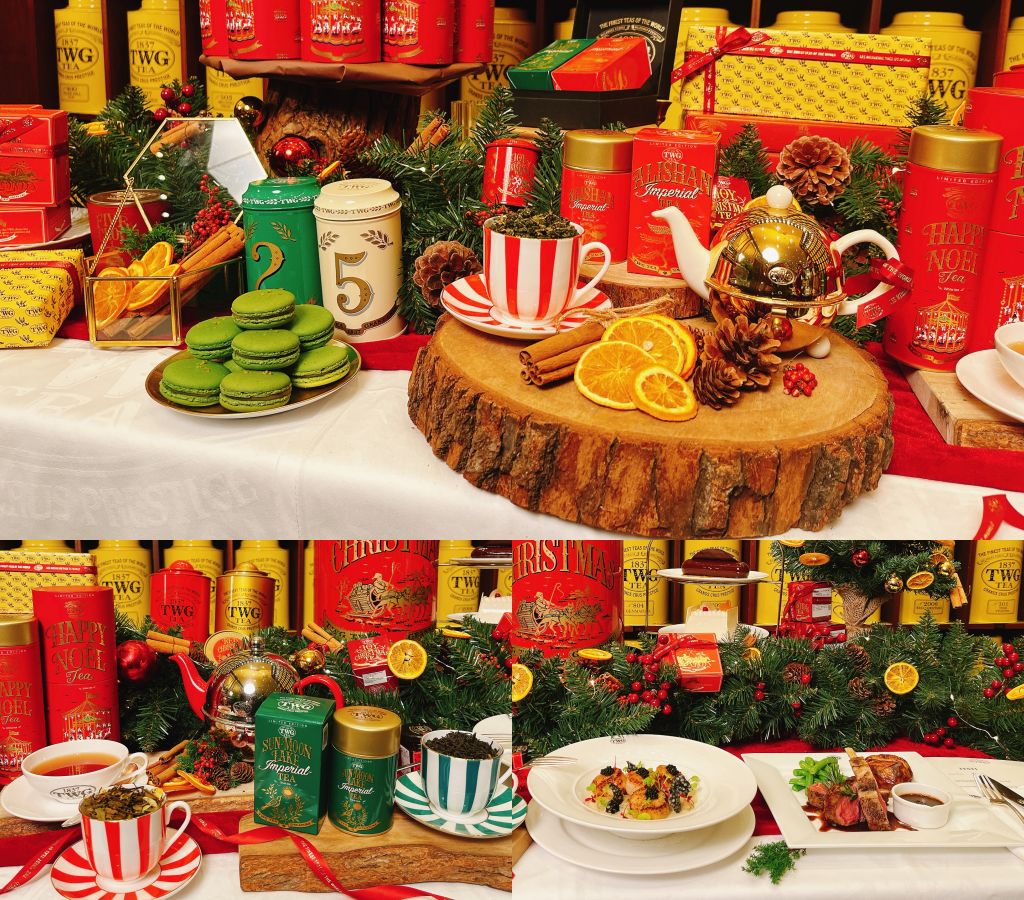 “聖誕茗茶套餐"以茗茶入饌的節慶主餐與特製甜點、搭配無負擔佐餐茗茶,清爽不油膩, 打造一場茗香食尚的精緻年末盛宴,為現代人完美演繹聖誕聚餐新食尚。聖誕茗茶套餐提供巧克力榛果/椰子百香迷你款聖誕木柴蛋糕、法式伯爵茶洋梨佐栗子香緹蛋白霜3款甜點任選,於TWG TEA精品沙龍期間限定供應。