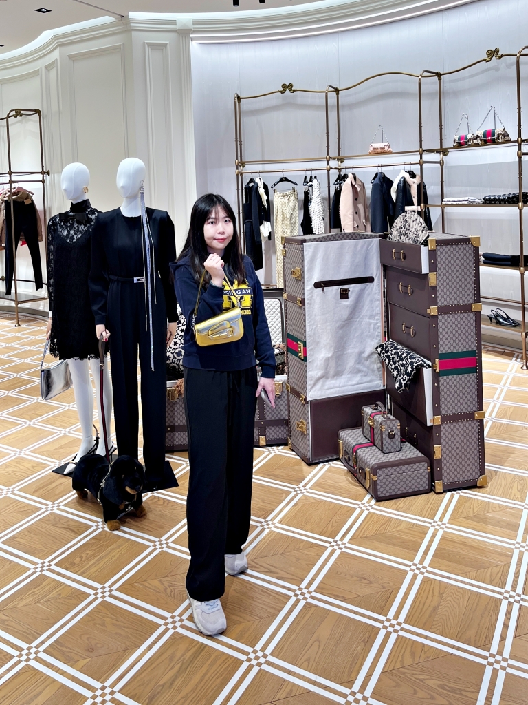 GUCCI特別臻選假日節慶最新包款及配件,女星邵雨薇示範GUCCI時裝搭配最新GUCCI Horsebit Chain粉紅色炫彩蓬蓬包,整體穿搭在亮麗包款點綴下輕鬆演繹超人氣閃亮派對風格,提供跑趴造型及年末送禮最佳靈感。