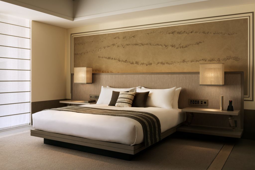 JANU TOKYO客房與套房位於酒店6~13層,面積由55平方米起,設計融合永恆亞洲風格內飾與當代歐洲格調。強調極簡主義與對稱性賦予舒適感,營造和諧的能量平衡。大多數客房設有私人陽台,可沉浸於城市天際線美景,或環繞麻布台之丘綠洲中。
