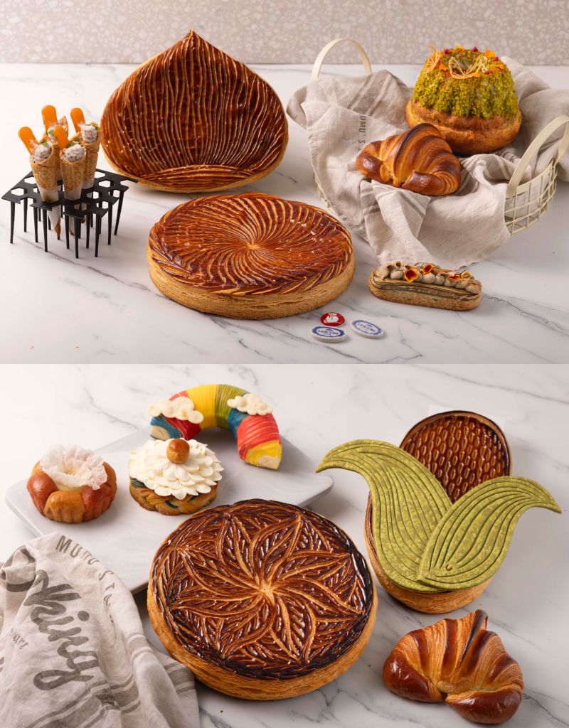 亞軍創意黃金秋栗國王派以栗子為造型,內餡使用糖漬栗子餡、杏仁奶油、柚子與黑醋栗,栗子香甜風味與漿果酸度完美結合。烏芋倫比運用國王派剩餘派皮創作,將派皮再次延壓、烘烤成迷你甜筒,擠上芋泥、裝飾烏魚子與金沙、海鹽,小巧可愛、滋味豐富,充滿濃濃季節感。唯一女團施絜中、李宜蔚從24節氣中節錄春分、芒種、秋分及大雪詮釋創作理念,透過柔美女性視角,四季烘焙有了嶄新美好呈現。