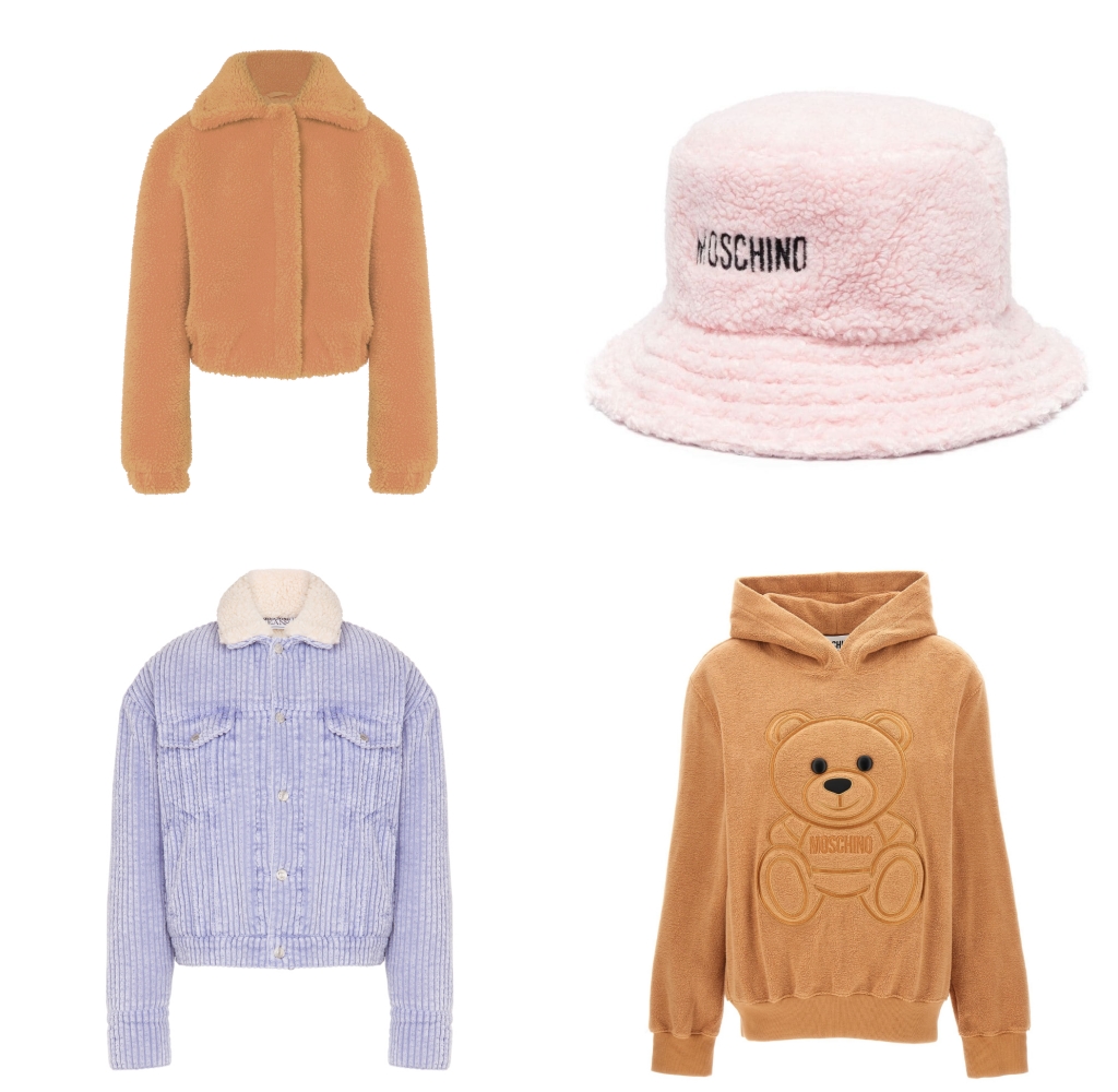 暖心又可愛的泰迪熊帶來好心情!義大利時裝品牌MOSCHINO招牌泰迪熊再次出招賣萌,羊羔絨帽T搭配胸前整隻泰迪熊,經典駝色更顯溫柔氣質,實在好想抱緊處理。MOSCHINO也推出粉嫩色彩燈芯絨夾克與漁夫帽,Jeans羊絨拉鍊外套、Jeans燈芯絨牛仔夾克、LOGO羊羔絨漁夫帽,幫整體造型增添甜美氛圍,相當適合女孩們!
