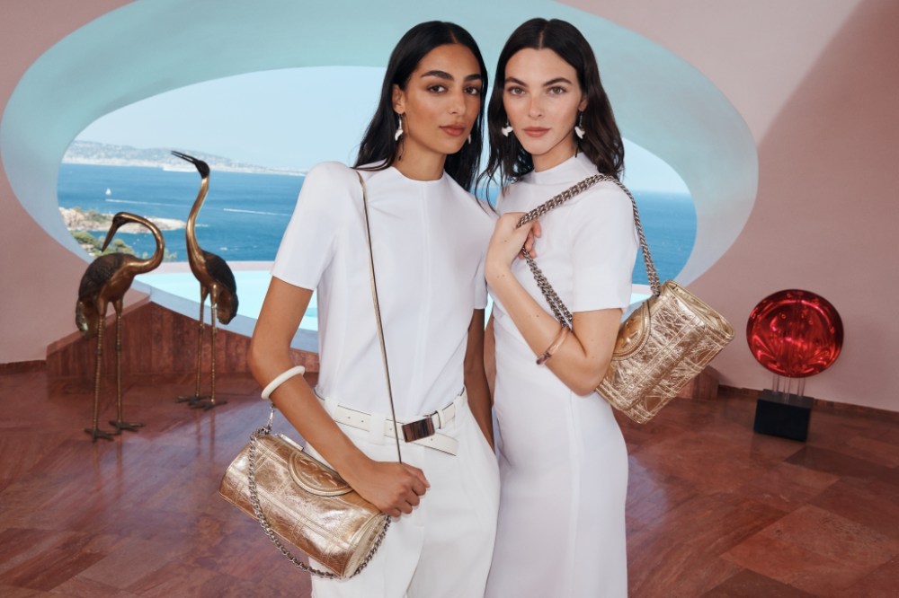 TORY BURCH 節日甄選包款與鞋履,蘊藏優雅復古趣味。以特殊處理的金屬質感皮革新塑經典包款T Monogram迷你托特包、McGraw小號水桶包、Fleming迷你鏈條軟皮托特包、Fleming軟皮單肩包,柔軟褶皺帶來別具一格的時尚風格,悅然鎏金假日,與日常穿搭相互輝映。新款Eleanor小號包款更具華麗氣質,天鵝絨面料細膩溫潤,觸感柔軟,雅致獨特,盡享悠然度假時光。
