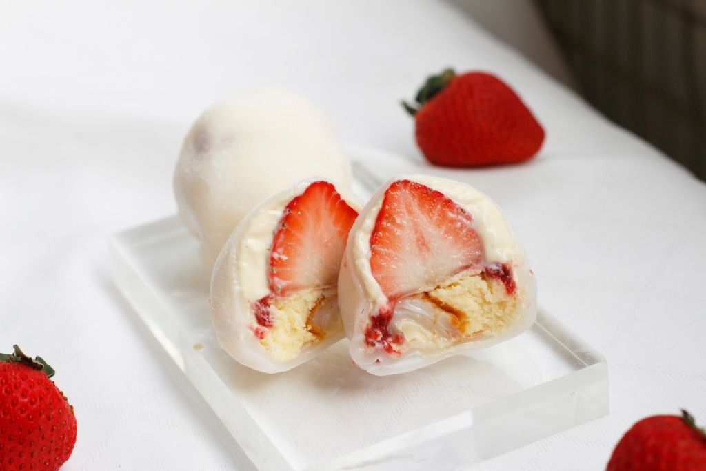 桂花紅豆口味以手工磨製紅豆泥添加些許桂花蜜佐以整顆草莓,甜而不膩,味道高雅細緻。玫瑰口味以玫瑰香緹加覆盆子醬,搗進有機玫瑰花瓣,玫瑰花香蔓延味蕾,添增浪漫氣息。抹茶口味以小山園抹茶製作,滿滿抹茶內餡與草莓結合,碰撞出驚喜滋味,久久難以忘懷。