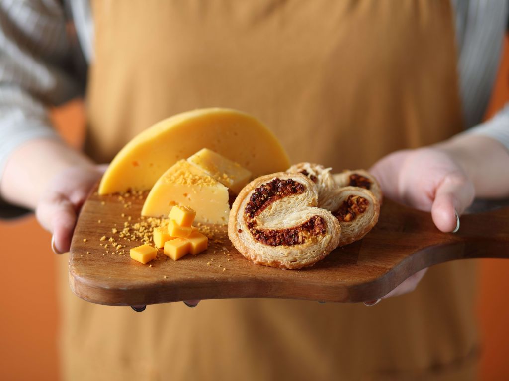 剛上市的台灣味”蜜香蘋果蛋捲”,嚴選台灣高山蘋果蜜漬製成果乾,將果乾揉入白巧克力內餡,保留蘋果香氣與果丁嚼感,一口咬下甜酸滋味滿溢,享受豐富蜜餡口感。