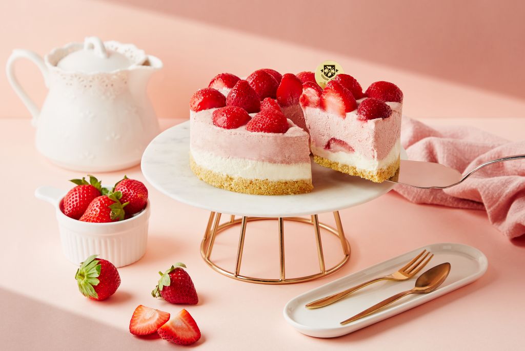 嚴選初冬第一批新鮮草莓,有著馥郁香濃的果香,並與小農合作產地直送,品嚐季節最浪漫的好滋味。蛋糕設計雙層生乳酪,上層是酸甜草莓生乳酪,下層以無糖優格製成優格生乳酪,底層鋪上爽脆餅乾增加口感,咬一口就能吃進3種風味,酸甜交錯彷彿初戀般地青澀滋味,甜而不膩更清爽。