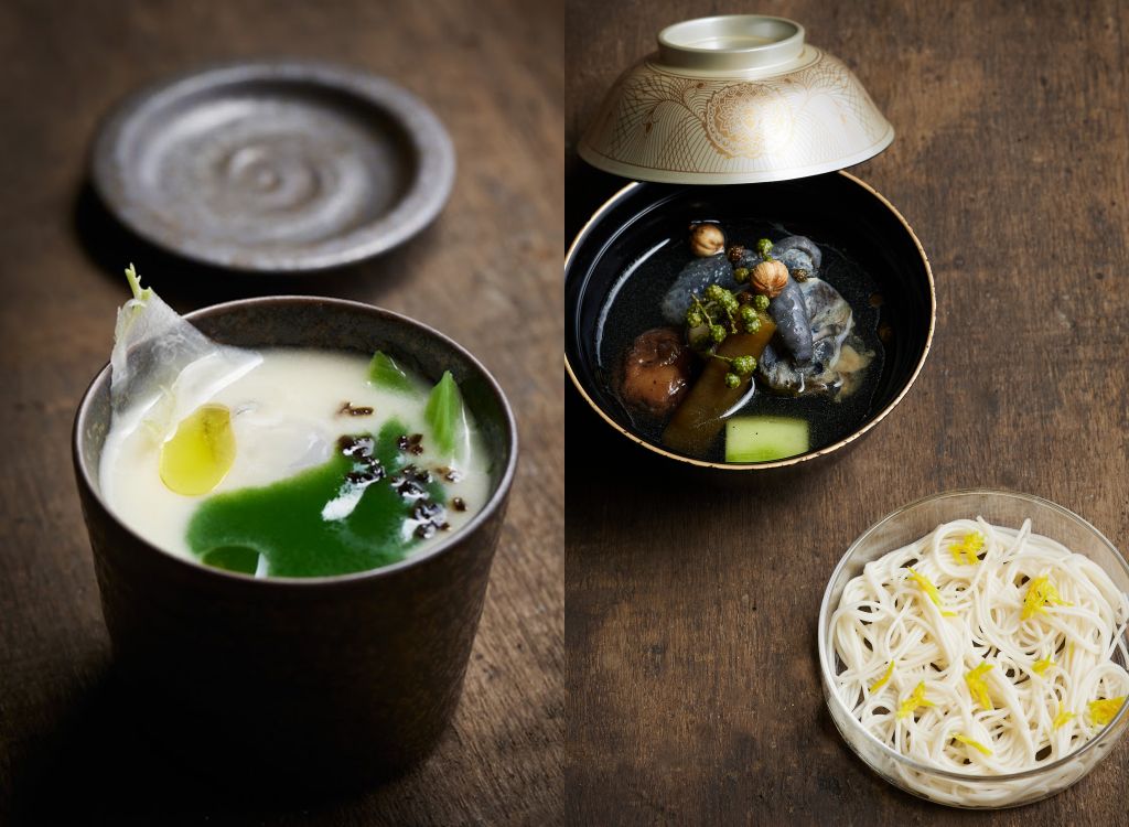 今年杪冬菜單分為2大意象:前半場是”由指尖傳遞回身體的溫度與心意",透過蔬菜濃湯、烏骨雞與和牛,以日本北陸冬季戶外酷寒與餐桌暖意的對比展開序幕。下半場以"豐富食材堆疊出內斂與飽滿風味"為主軸,讓台灣、紐西蘭、日本不同地域的高山與深海豐美佳餚,宛如疊句詩般層層共鳴。