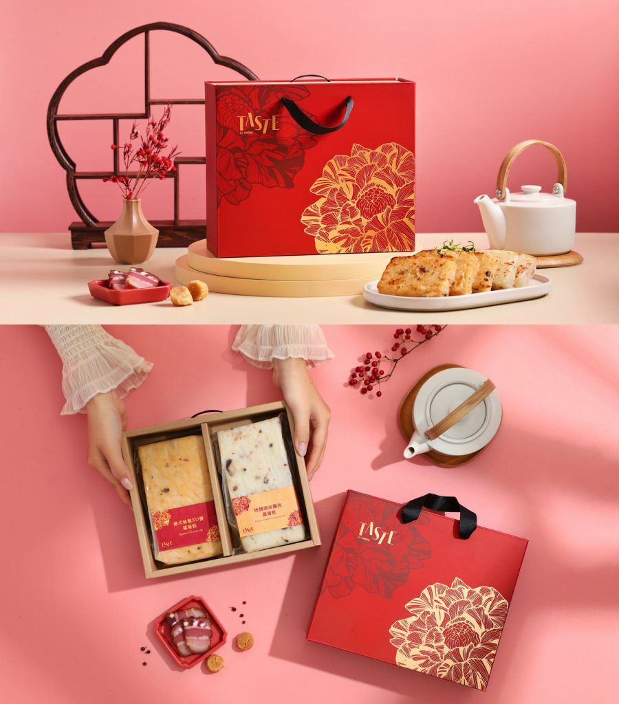 “職人豐味蘿蔔糕禮盒組”結合海陸滋韻,含煙燻湖南臘肉與港式秘製XO醬蘿蔔糕口味,嚴選南門市場70年臘肉舖與師傅秘製XO醬,調和鮮明清香白蘿蔔與米漿,用料豪邁,每口都吃得到蘿蔔清香及海潮鮮香的冬季旬味,與傳統臘肉的豐富滋味,限時限量開放販售。搭配風格大膽新穎的抽拉設計,外盒手感溫潤傳遞質感,是味蕾及視覺雙重饗宴。