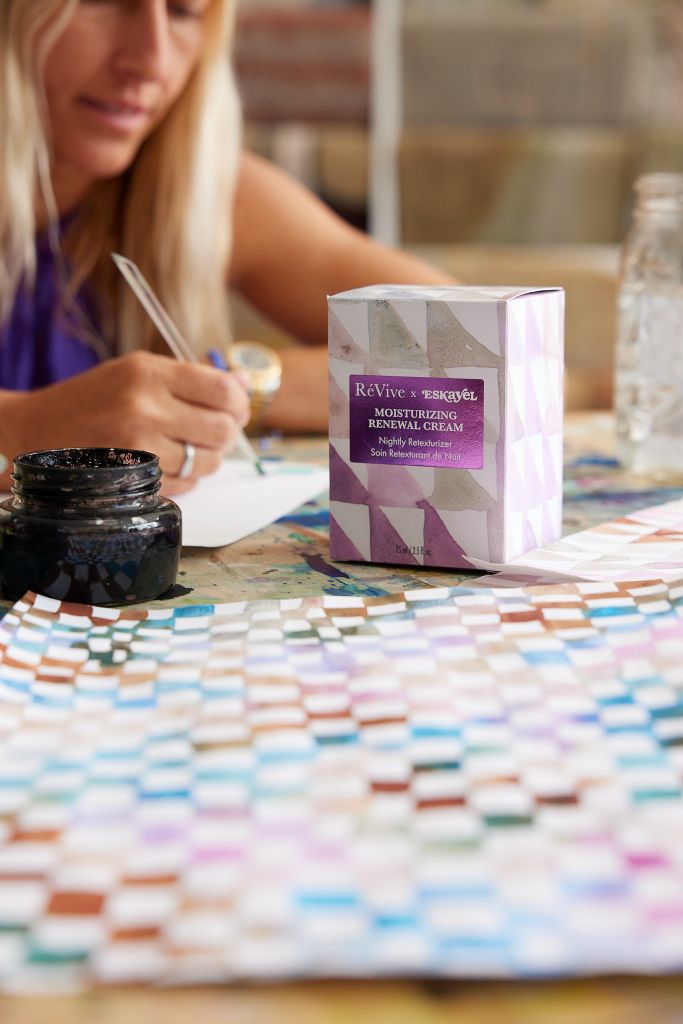 美國奢華保養品RéVive攜手紐約紡織設計工作室Eskayel打造流動幾何圖形之間藝術之美,全新亮眼限定包裝光采再生活膚霜–幻彩絢染藝術加大版,一夜絢染肌膚新生光采。