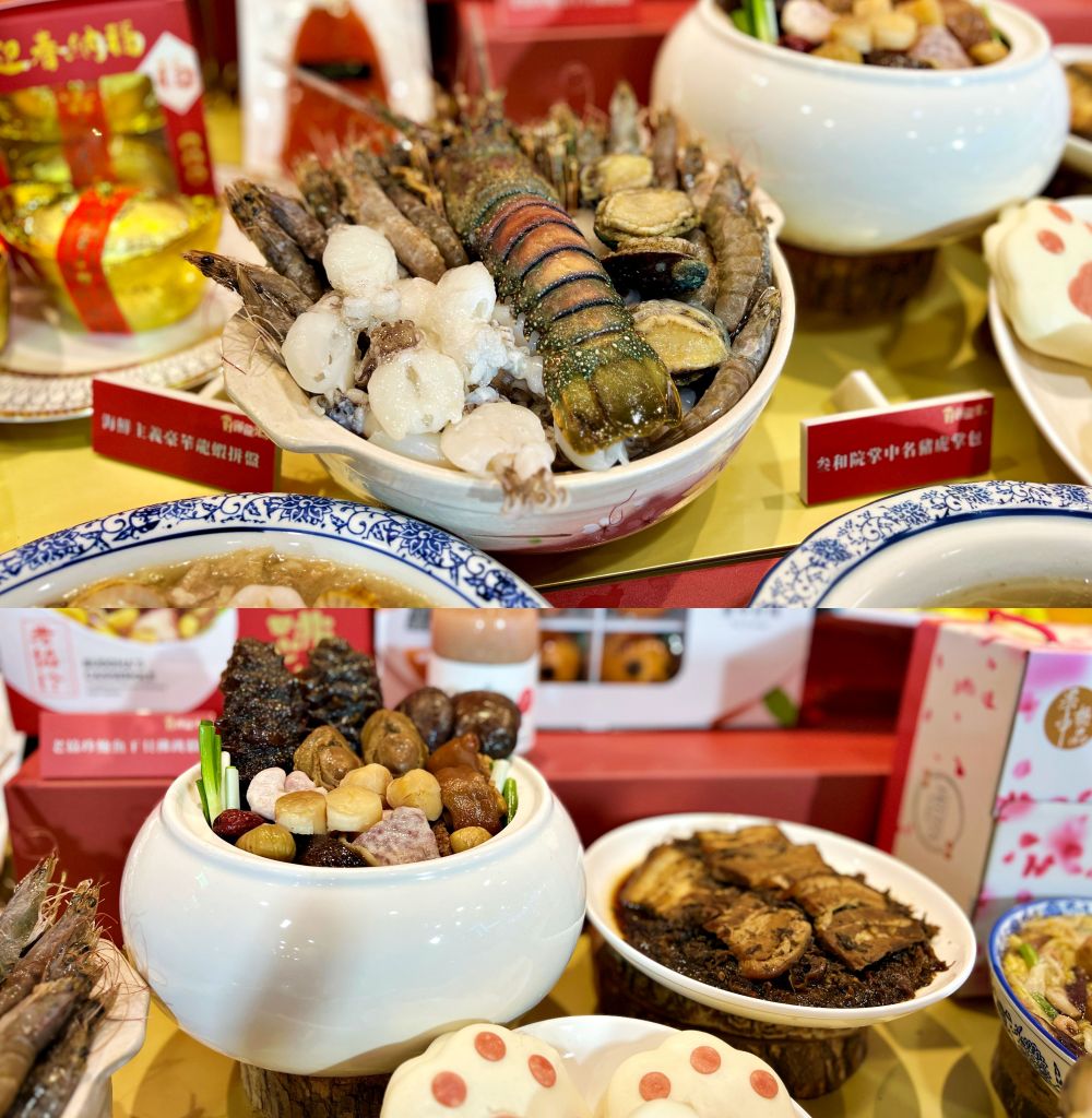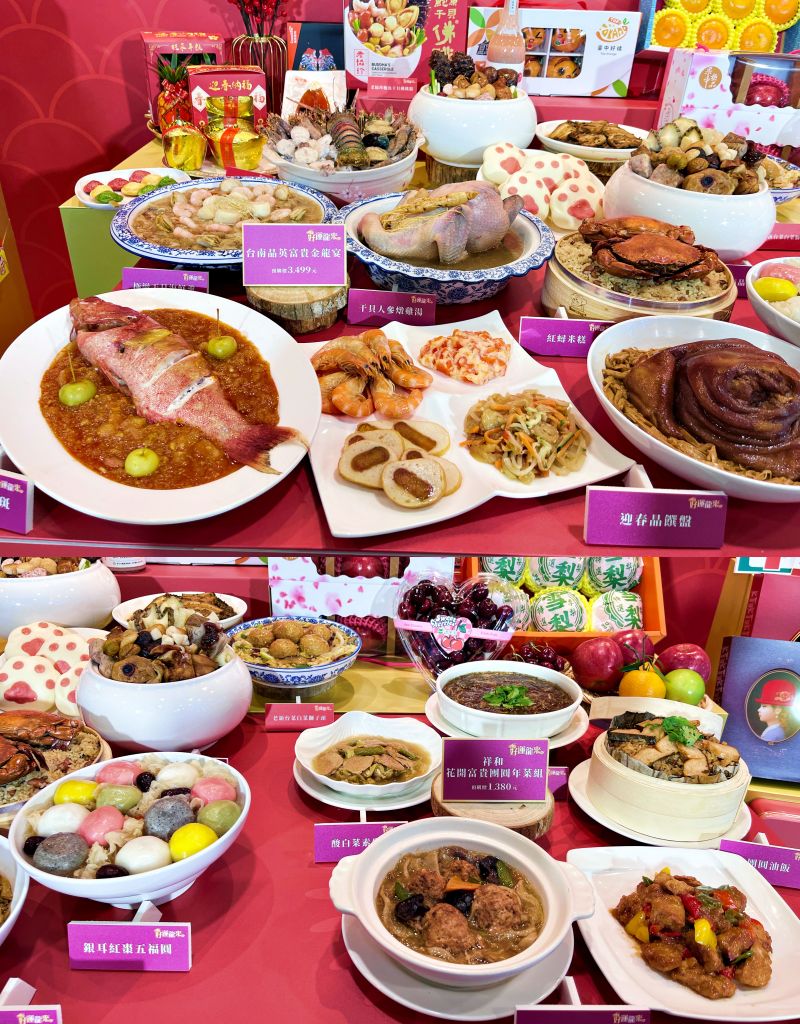 ”台南晶英富貴金龍宴"集結海陸美味;"大嬸婆祥龍瑞氣年菜組"比熱炒店還划算;素食族群有祥和、鈺善閣、寬心園等名店套餐。名店功夫菜備足7款飯店、5款米其林得獎、1家必比登推薦名店,更網羅台南錦霞樓紅蟳干貝米糕、海鴻萬巒豬腳、億長御坊、富錦樹食堂、真心台菜等在地美味。