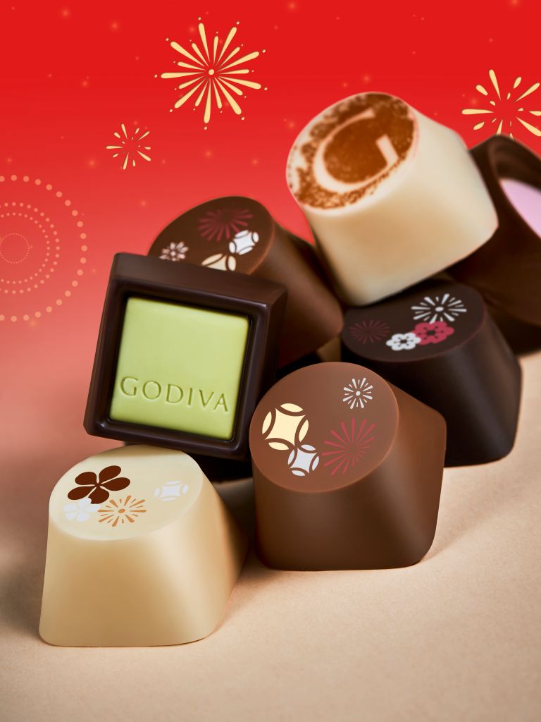 將現代製作工藝與傳統經典元素創意碰撞,GODIVA以百年精湛巧克力製作工藝為底,創作兼具美味與視覺饗宴的2024新年限定巧克力:外觀以春日百花齊放與新年漫天煙花為靈感,呈現炫麗花朵與煙花綻放意象,象徵新年的美好祈願,搭配層次分明、滑順甜蜜的精巧美味內餡,回味無窮的新春甜蜜令人欣喜。