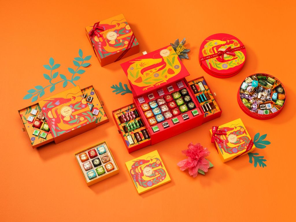 外盒包裝設計採用中國剪紙藝術融合大紅與金黃配色,勾勒龍身輪廓裡繪製色彩斑斕圖案與花卉裝飾,體現吉祥如意的開春意象。內盒盛裝Venchi奢華精緻美味巧克力,創造充滿歡樂與愛的甜蜜團圓時刻,陪伴摯愛的家人朋友迎接龍年璀璨光芒。