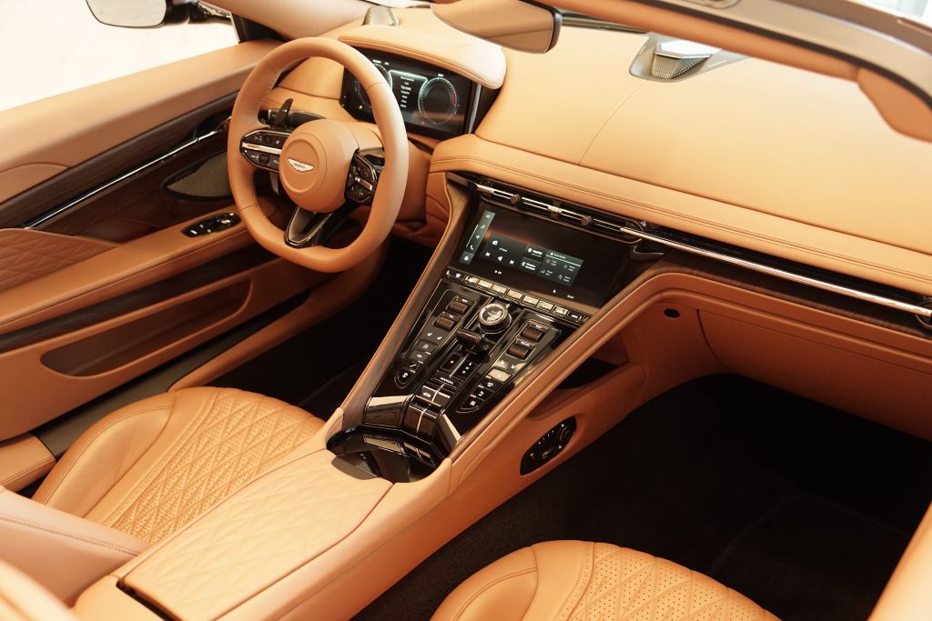 內裝採用10.25吋觸控螢幕,具備全電容式單指、多指手勢控制。透過無線Apple CarPlay、Android Auto及ASTON MARTIN專為iOS與Android系統開發全新APP,人體工學介面與自主研發資訊娛樂系統全面進化,構築新世代豪奢工藝內涵車。