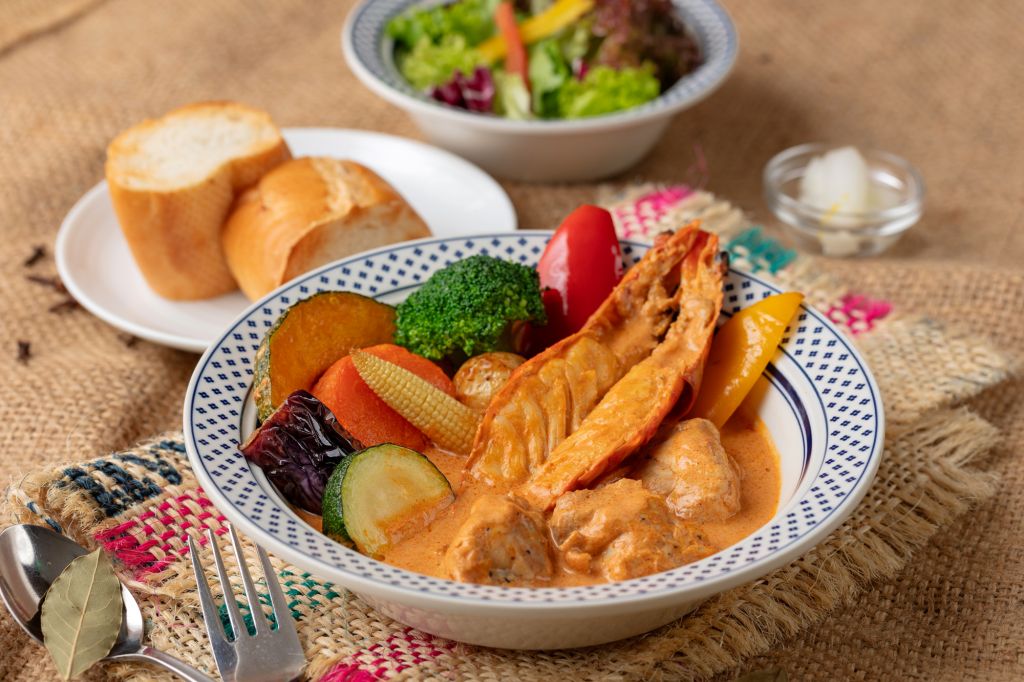泰迪農園咖哩以滿滿蔬菜聞名,日籍咖哩顧問帶來雞肉鮮甜風味的新宿風咖哩,及濃厚牛肉風味的帝國風咖哩,同步帶來南洋風情"香煎海老燉鶏雙拼紅咖哩",一次可品嚐爽吃海大蝦、舒康雞,紅咖哩甘甜濃厚,享受吸附紅咖哩的海陸豐美,讓2024年初始就能獲得滿滿咖哩療癒。搭配法國麵包或越光米,精緻而又飽足。