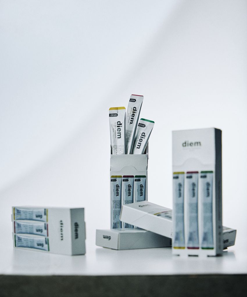 diem全系列口腔保養品牌名稱來自拉丁文Carpe Diem,原意為”活在當下”,採用德國專利研發植萃溫和配方,添加複合植物精油核心成分,榮獲日本厚生勞動省認證,配方溫和清新自然,獨特滋潤甘香口感,銀灰啞色系中性時尚簡約包裝設計,重新定義潔牙用品。