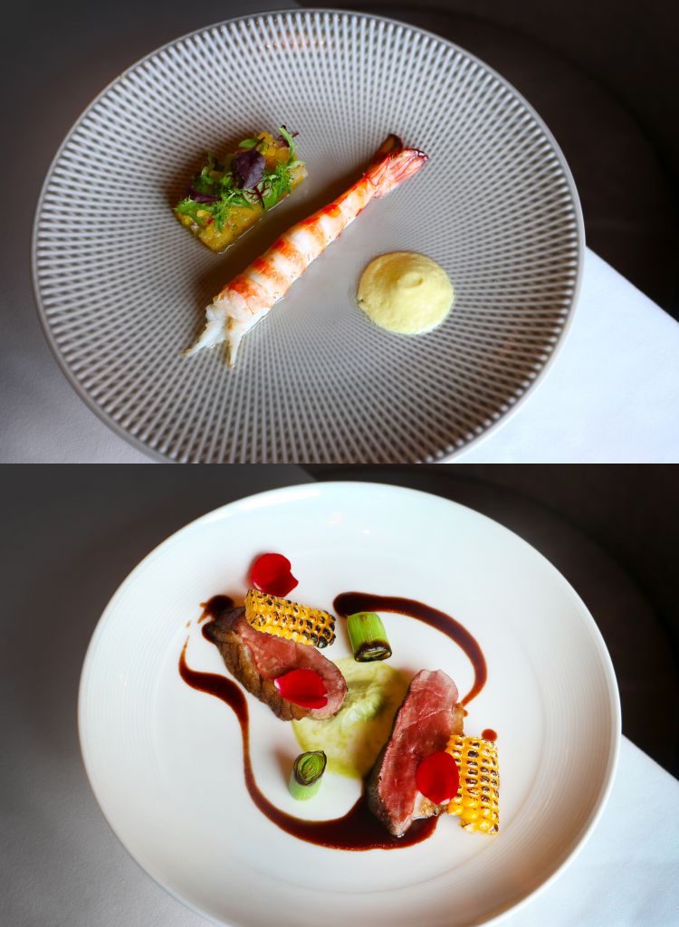 開胃小品美國綠蘆筍漬鯷魚以醋漬鯷魚包裹綠蘆筍、葡萄,配上櫸木煙燻奶油,昇華美味層次。前菜鹽煮斑節蝦選用新鮮甜美的斑節蝦,清鮮爽口。煙燻軟絲澄清雞湯湯頭鮮美濃郁,搭配帶馥郁茶香的軟絲,美味誘人。其他菜色包括熱前菜嫩煎櫻桃鴨胸、甜點、咖啡或茶。