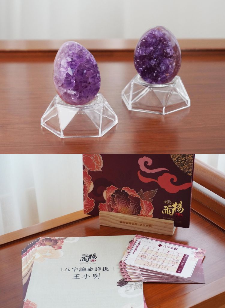 長榮鳳凰╳雨揚老師十來運轉住房專案可獲得雨揚老師親算八字論命詳批命書,書中洞悉個人未來10年流年運勢,提點適合的職業、吉祥方位、幸運貴人、幸運色與幸運寶石,並提供個人專屬命格提醒及夢境疑惑問答。開運專案還贈送雨揚老師挑選的純天然全拋光瑪瑙紫水晶及專屬親算五姓財神貼,祈願好運連年。