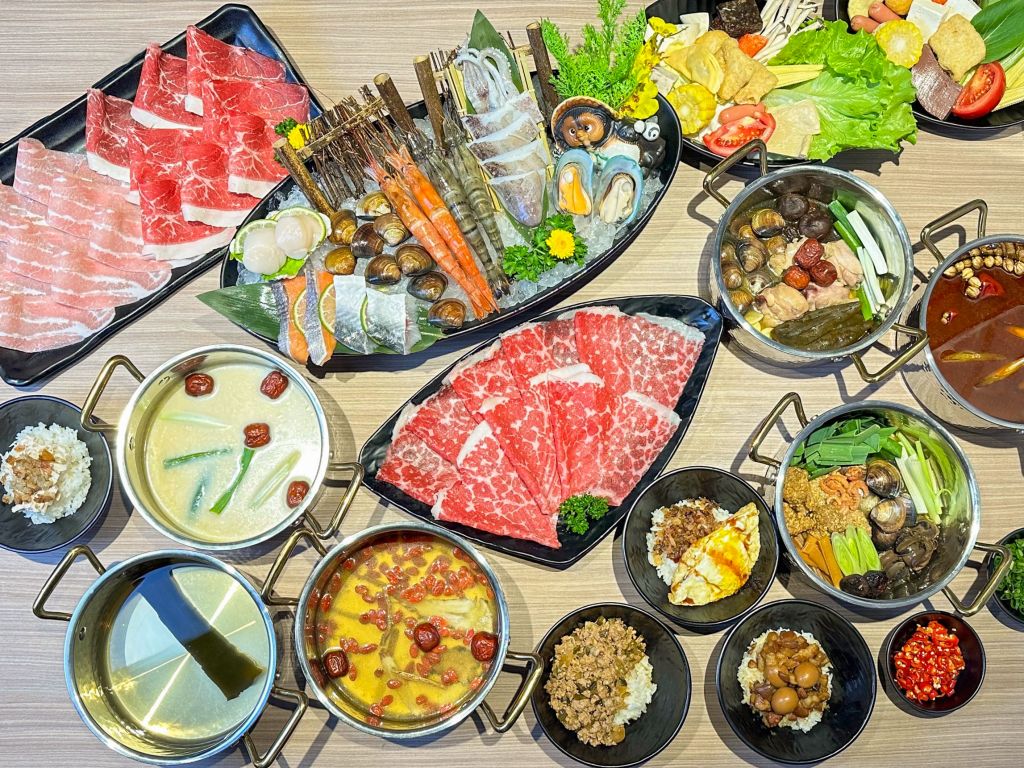 台式有料湯底古早味魷魚螺肉蒜鍋,完美復刻古早味,湯頭鮮甜有層次、內料豐富,誠意滿滿。剝皮辣椒蛤蜊雞腿鍋湯頭微辣,讓人一口接一口停不下來。本季限定麻油雞胇雞腿鍋、燒呼呼薑母鴨鍋分為有酒版/無酒版,有酒版將有專人桌邊爆炒,帶來一場味覺、嗅覺與視覺的美食饗宴。