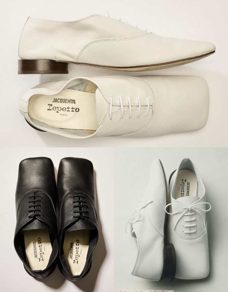 Repetto與JACQUEMUS聯名力作鞋款中,JACQUEMUS對Repetto經典牛津鞋款Zizi做了全新演繹,將原本圓的楦頭改為方的楦頭,並將鞋跟改為圓型,保留原先簡潔俐落線條,以幾何方式重新建構鞋款。而獨特的方形楦頭讓人聯想起芭蕾舞鞋,也呼應Repetto以芭蕾舞起家,並與芭蕾深深扎根的傳統。