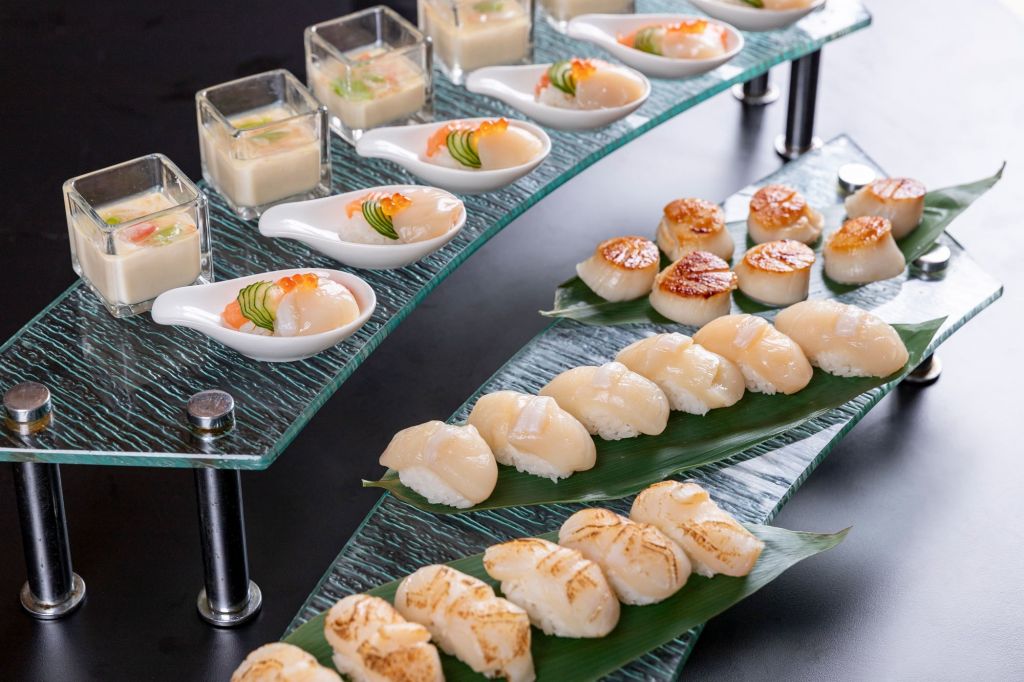 感恩回饋活動特選北海道生食級干貝、鱈場蟹、海膽及厚岸生蠔等優質海產,新上任長瀨行政副料理長與歐風館自助餐廳、桃花林中國料理及山里日本料理餐廳主廚們發揮巧思打造22道風味各異、極致美味的海鮮佳餚,不用出國,在台灣就可以與日本零時差同步享用大海美味恩賜。