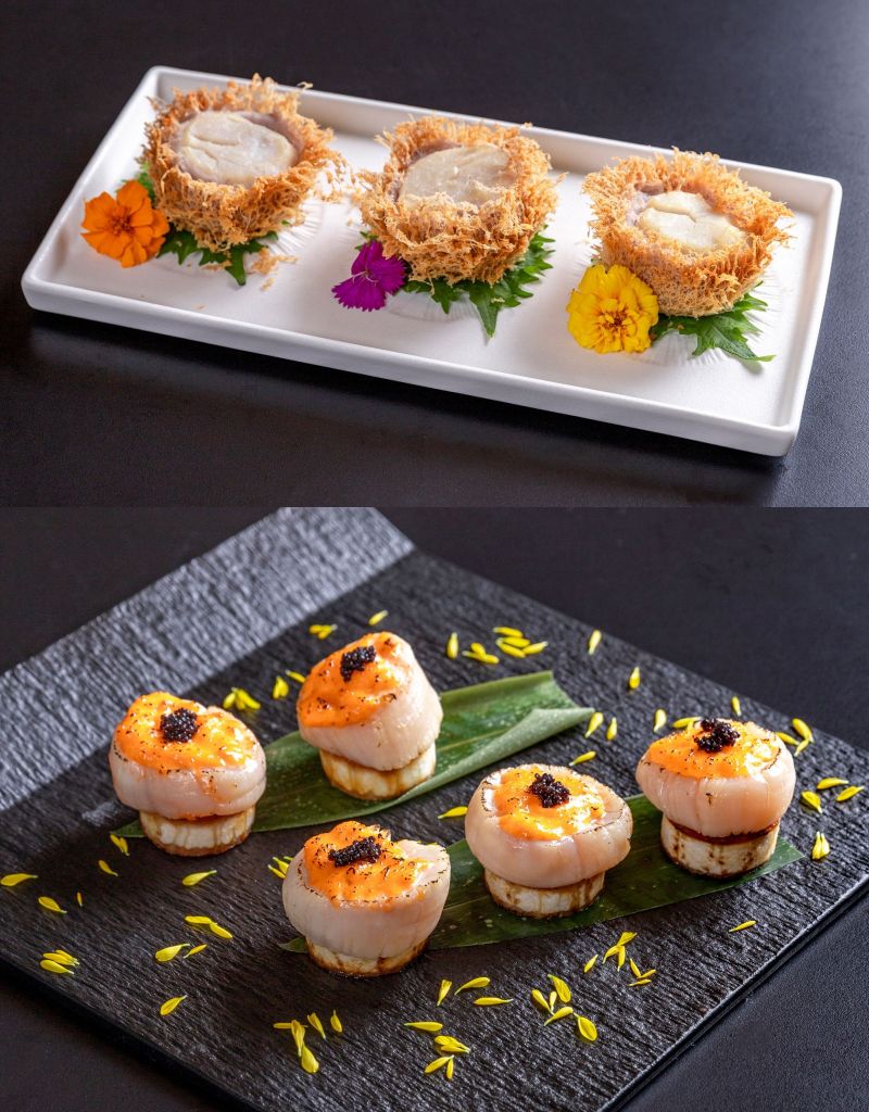 特別以象徵好運的干貝為主角設計一系列佳餚,特選比冷凍生食級干貝成本高2倍生鮮北海道生食級干貝,呈現珍珠白色澤肉質,如掌心大小M等級干貝,每粒皆飽滿厚實,無需添加任何調味料即可品嚐干貝軟嫩彈牙口感及豐富鮮甘美味,尊享極致海鮮饗宴,沉醉於日本海鮮祭美味之境。