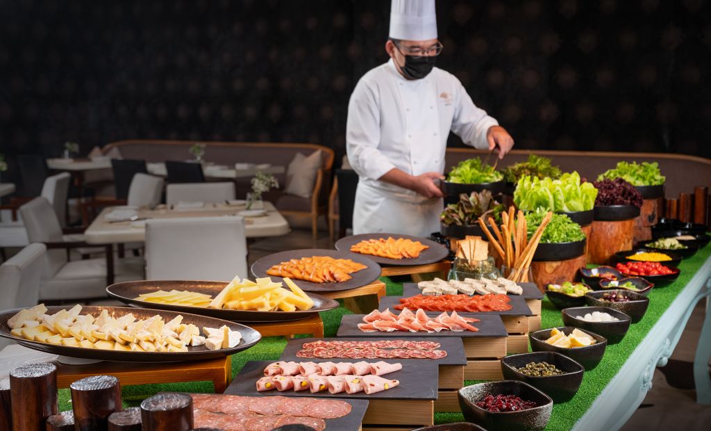 主廚林禹德嚴選宜蘭鴨胸、波士頓龍蝦與澳洲和牛等食材,帶領廚藝團隊傾力設計一系列經典美味佳餚,搭配自助式活力健康沙拉吧與開胃冷肉盤,及行政西點主廚趙崇曦精心打造繽紛誘人精品級甜點吧,讓美食愛好者以舌尖暢享食尚美饌。