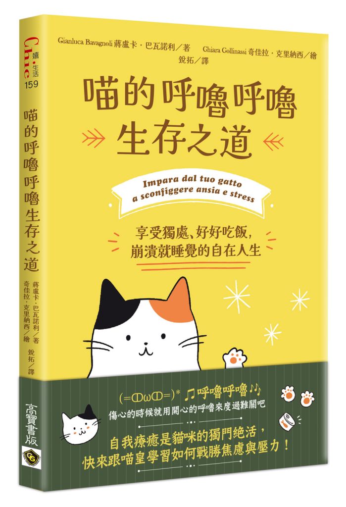 《喵的呼嚕呼嚕生存之道》(Impara dal tuo gatto a sconfiggere ansia e stress)這本書有各種遊戲、插圖、還有根據貓咪習慣延伸出的瑜珈貓姿勢,從身體到心理都能完整療癒你。