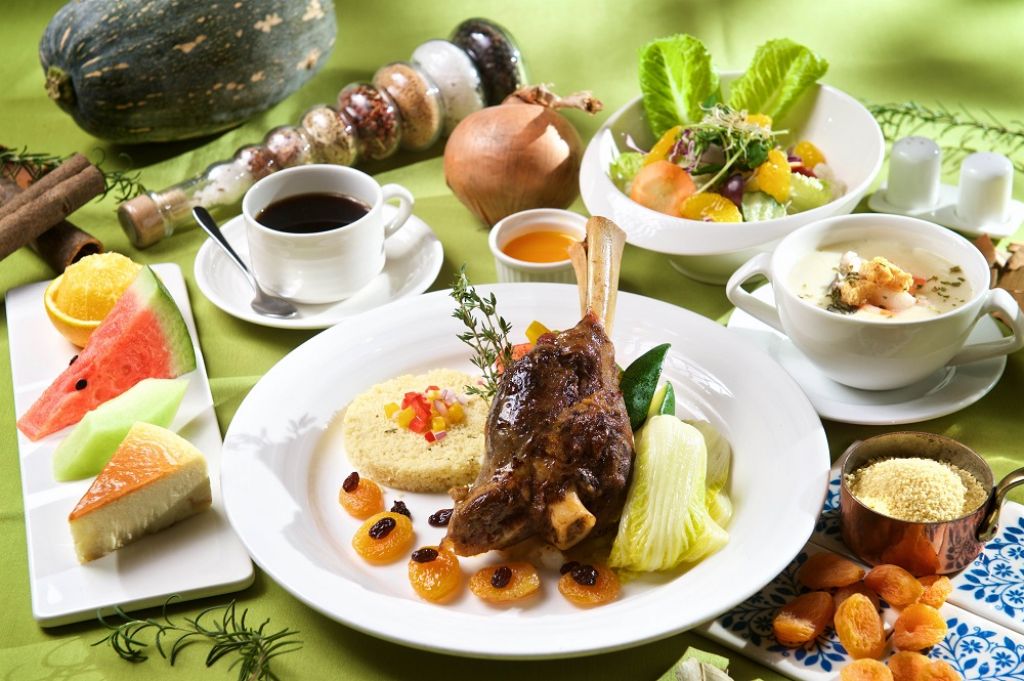 主餐首推”摩洛哥羊膝佐庫司庫司”,主廚以匈牙利紅椒粉、孜然、玉桂等辛香料,特製為摩洛哥風味醬搭配羊膝燉煮,佐入高湯拌炒北非特有小米庫司庫司,入口瞬間湧入多層次異國風味,是當地幸福與豐收的象徵。