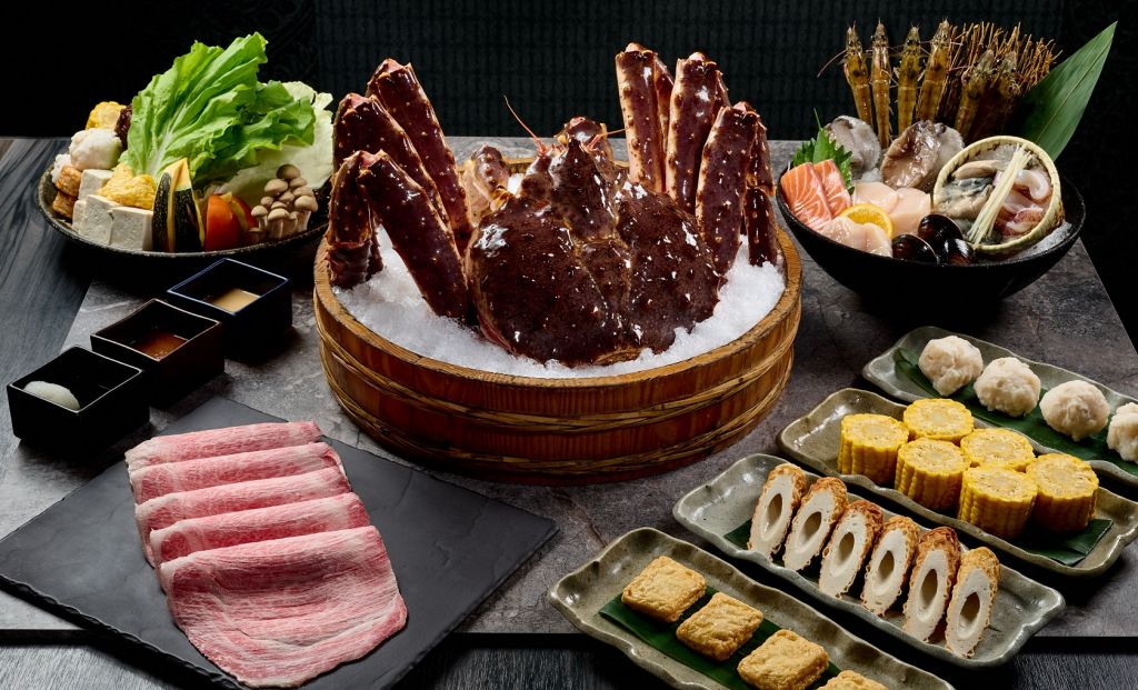 食材嚴選各大洋頂級活鮮海鮮、美國USDA Prime頂級牛肉,小農新鮮產地直送蔬菜盤等,更特別引進日本三大和牛之一近江牛,主打日式淡琥珀色高湯及頂級壽喜燒,及代客烹煮、涮燙桌邊管家式服務,帶來獨一無二視味藝俱全頂級體驗。