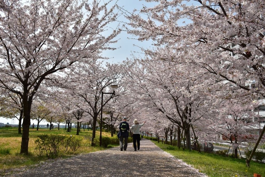 荒川沿岸距離大島小松川公園很近,種植染井吉野櫻、大島櫻、山櫻等約30種櫻花,多達約1000棵櫻花樹,形成2公里長櫻花長廊,十分壯觀,有”小松川千本櫻”之稱,散步在河岸有盛開的各類櫻花相伴,愜意又浪漫。
