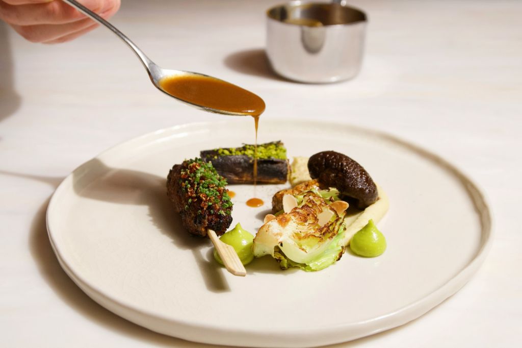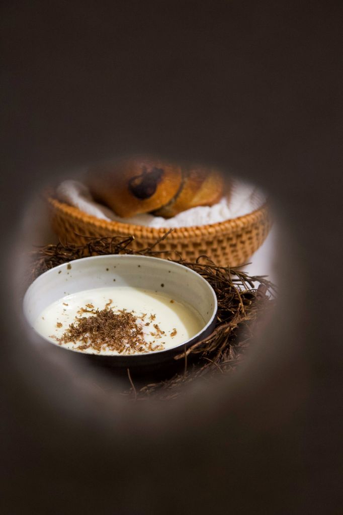 CURIOUS分別有以當季蔬食為料理主題的Curious Table及供應酒品的Curious Bar,Curious Table隱身於交織東西風格的Curious Bar酒吧裡面,主推蔬食Fine Dining,菜式融合台灣當令蔬果與法式烹調,用全蔬食詮釋季節更迭的驚喜美味。
