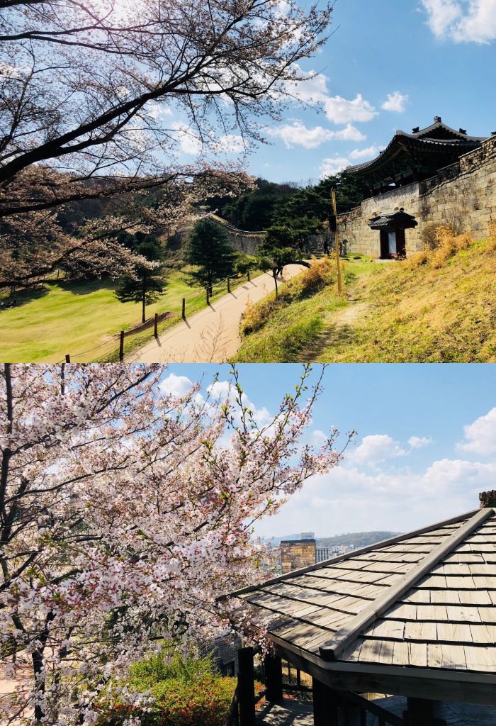 4.清州機場:清州春天歷任韓國總統別墅青南臺可以看到櫻花紛飛,處處繪有特色壁畫"壽岩谷"也是絕佳賞櫻景點,壽岩谷咖啡街店家大部分為露臺型咖啡廳,白天可俯瞰清州市區全景,晚上能欣賞夜景。貫穿清州市區的無心川,沿著河堤整條道路先染上活力鮮黃色,櫻花花期搖身變為粉嫩櫻花大道,兩種花色交錯出動人浪漫景色。