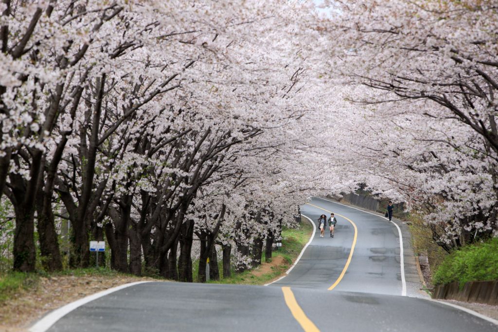2.金海機場:韓國最大春季慶典"鎮海軍港節",現場有軍樂儀隊表演,搭配最佳賞櫻景點餘左川橋兩旁夾道粉白櫻花樹,夜晚以燈光點綴華麗櫻花道,與白天呈現截然不同樣貌。全羅南道與慶尚南道交界河東郡花開面,花開市場到雙磎寺間"十里櫻花路"有著"婚禮路"之名,開滿粉色細雪般櫻花,盡情享受春日浪漫。