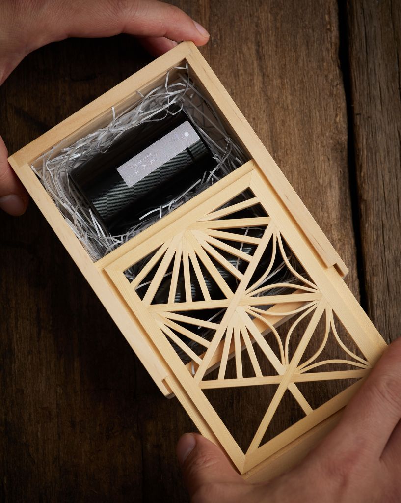 和煦春曦茶禮盒外盒由鹿港木製日本窗花第二代傳人、正利木器陳正忠與陳建利手工打造,像太陽與花朵造型一樣的數十根美麗木線條,以不不同角度手工黏合起來,保留原生木料的溫潤觸感,盛裝輕便好攜帶的迷你茶罐,如同隨時徜徉在飛花落院的春日微風中。