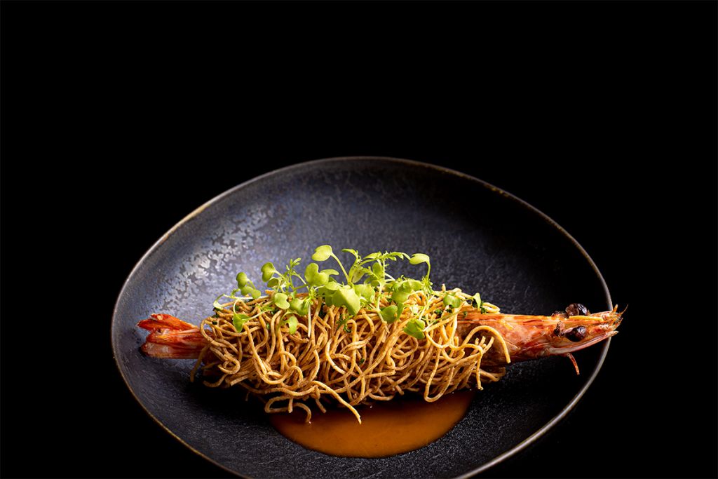 用冷萃冬片的清新花香結合刺身盛合飽滿旨味,梨山紅茶細緻莓果的香氣搭配甘露車海老的蝦子帶來鮮味,白茶青草香氣增添三味牛蒡的甘甜,內斂的尾韻互補和牛飽滿的口感體驗在茶湯氤氳、茶香沁鼻中茶與餐食的搭配。