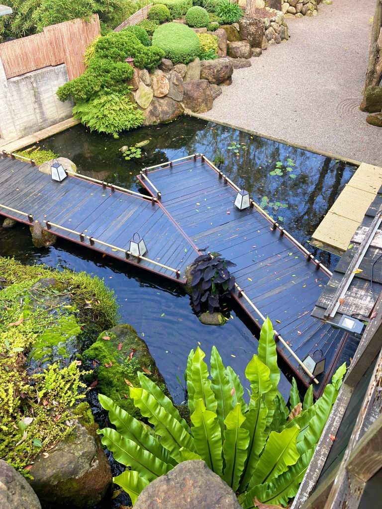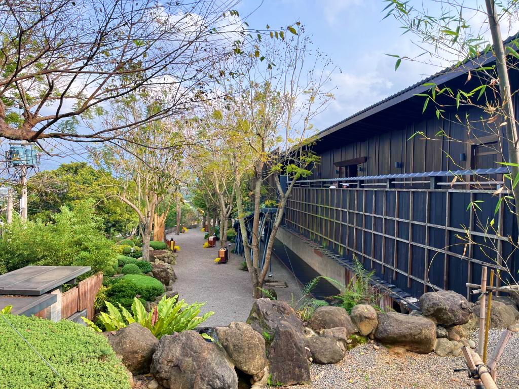 層巒疊嶂襯托庭園形成靜謐安詳的絕麗景致,庭院枯山水如畫作般共同構築成具禪意的優美氣蘊,復古桌椅映襯古意韻味濃厚氛圍,感受緩慢寂靜的悠然意境,傾聽四面八方的大自然聲響,以美好姿態形成一處難忘風景。