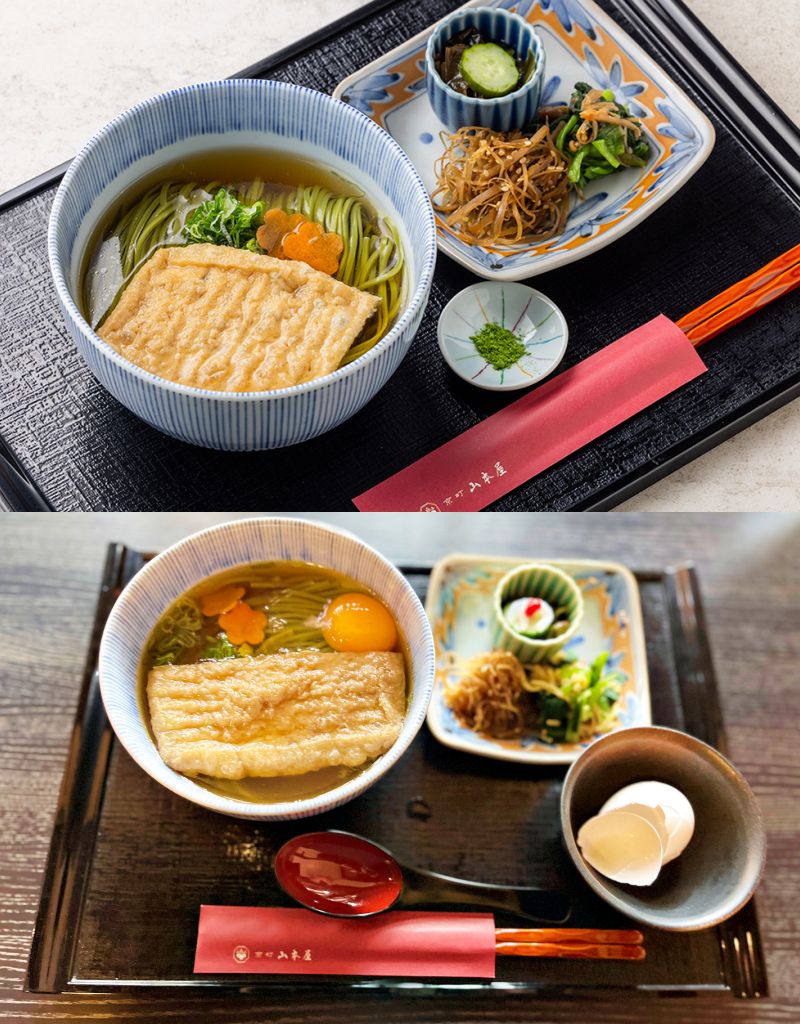 自家製豆皮抹茶溫麵使用日本雁音焙茶與利尻昆布熬煮製成的美味豆皮,搭配宇治抹茶麵製成溫湯麵,讓味蕾沉浸在茶香與獨特口感美味中。柚子昆布高湯及京都柴魚風味高湯2種湯底各有風味,層次豐富溫和,讓人不由自主將麵湯全都喝完。