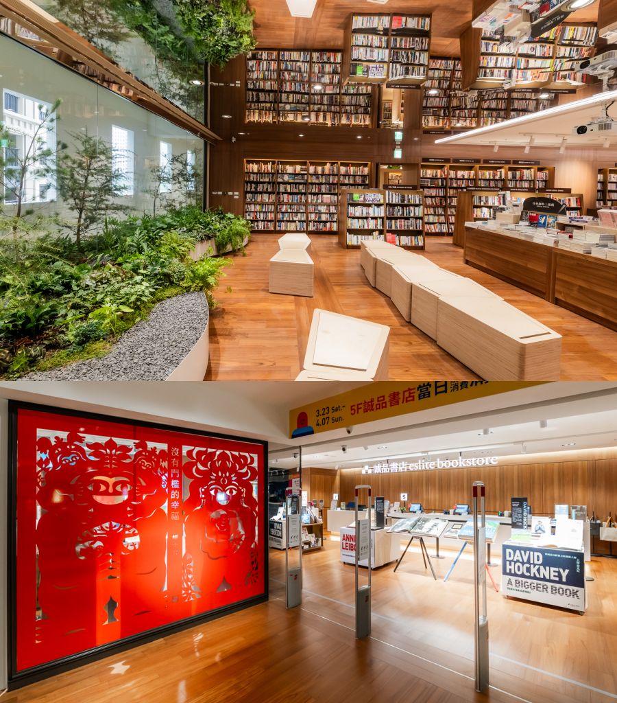 5F書店以十字動線打造3大主題閱讀端景,邀請曾創作台中花博圍籬的剪紙藝術家楊士毅展示「門神爸媽」剪紙意象作品。適逢35週年,誠品以”BookStory:閱讀書店故事”為主軸,將於誠品生活480啟動,推出美感探索導覽講座、兒童感官律動體驗等活動,5/4更全天24小時不打烊,呈現白天至深夜的多樣書店想像!